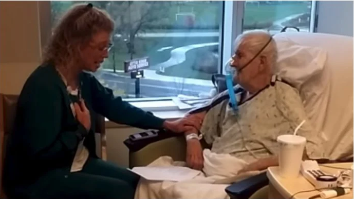 Медицинска сестра му пеела на постар пациент во болница. Тој едвај зборуваше поради лошата здравствена состојба, но одговори на пеењето на Бренда.