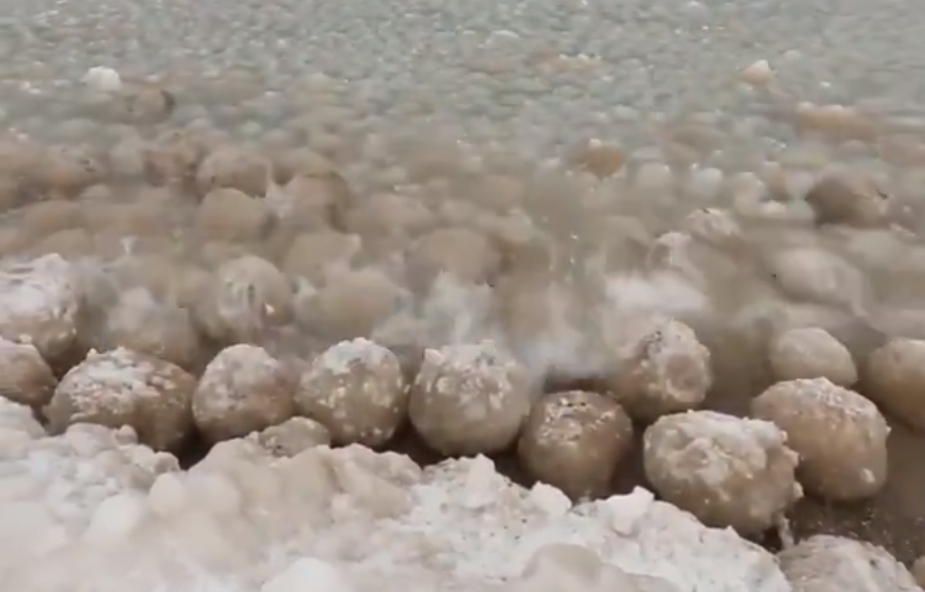 На почетокот изгледа како морето да турка илјадници огромни мастодонски јајца кон брегот, но во реалноста тоа е нешто сосема друго. Имено, она што изгледа како јајца се всушност огромни парчиња мраз.