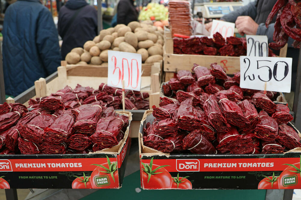 Низа суви пиперки чини од 600 до дури 1000 денари, во зависност од големината на редот. Лукот е 250 денари, домашниот 300 денари за килограм. Поквалитетен грав е 250, компир од 40 до 50, а килограм ореви од 450 до 500 денари.