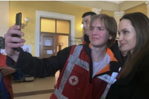 Актерката, која е специјален пратеник на ОН за бегалци, се сретна со деца без родители и раселени – вклучително и млади луѓе евакуирани од Мариупол, како и со украински волонтери и лекари кои се грижат за нив.