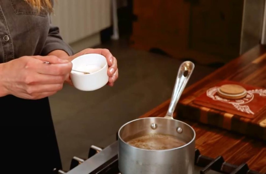За да направите солена вода за плакнење на грлото, треба да измешате една четвртина или најмногу половина лажичка сол со 230 милилитри вода.