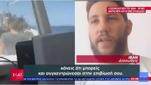 30-годишниот Иван од Скопје, кој пред еден месец заедно со своите пријатели исчезна на отворено море од плажата Мити на Халкидики, за грчката телевизија СКАИ ја раскажа својата потресна приказна за преживувањето и спасувањето.
