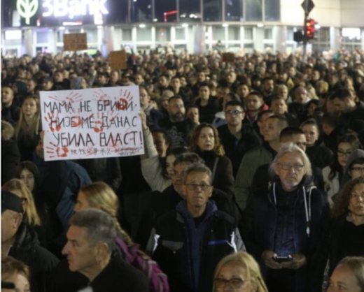 Фекалии завршија врз Градското собрание во Нови Сад, за време на денешните протести, пришто демонстрантите повикаа на одговорност поради смртта на 14 лица по уривањето на натстрешницата на железничката станица во тој град.