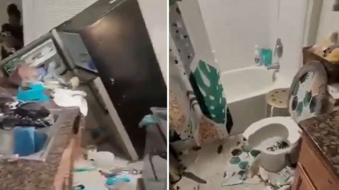На видеото кое го објави мајката на момчето, гледаме дека станот им бил целосно уништен додека биле на работа.