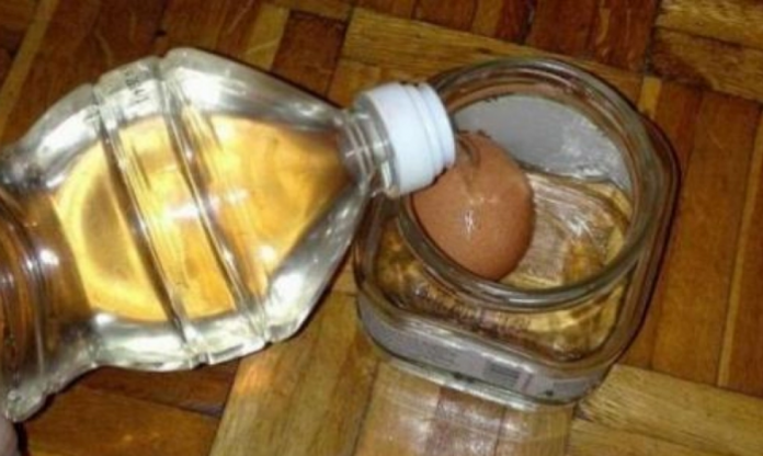 Навечер скршете го јајцето и излупете го, а потоа со вилушка направете неколку дупчиња. Ставете го во сад и покријте го со оцет. Оставете го така преку ноќ.