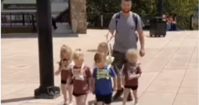 Таткото на пет деца предизвика жестока дебата откако сподели видео на Инстаграм на кое се гледа како ги шета своите деца