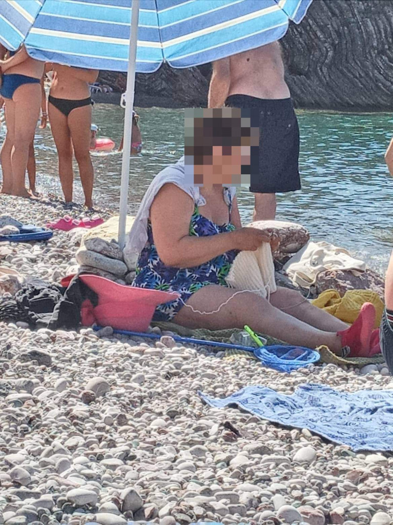 Така еден наш читател забележал прекрасна госпоѓа на плажа која „подготвува“ зимско палто, поточно плете.