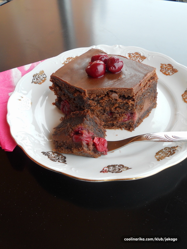 Додадов вишни и користев вишни од замрзнувач, мислам дека е подобра комбинација ;)) Се разбира, ако колачот ќе го јадат деца, исфрлете ги вишните.