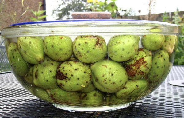 Постапка: измијте ги младите ореви, исушете ги, исечете ги на четвртини и ставете ги во тегла, па прелијте ги со медот. Најдобро е да користите ракавици при берењето и сечењето, бидејќи кожата од прстите ќе ви бидат црни. Добро затворете ја теглата и оставете ја да стои на сонце еден месец. Повремено протресете.