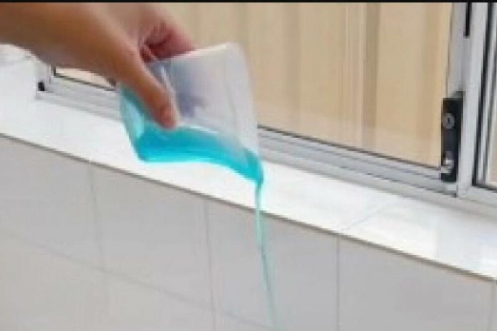 Првиот чекор е да истурите вода во сад со тоалетна четка. Потоа додадете капа со течност за дезинфекција во водата и промешајте. На крајот, земете ги таблетите од машината за перење и измешајте ги во течноста додека целосно не се раствори.